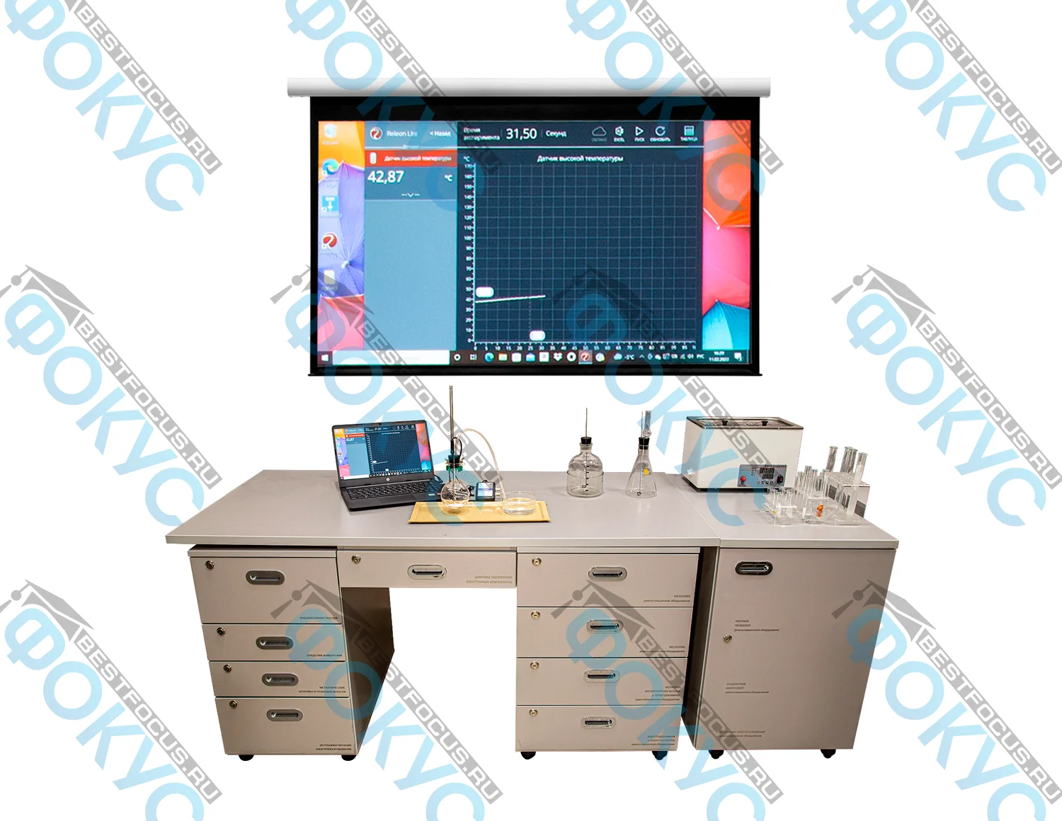 Демонстрационно-лабораторный комплекс по химии помогает выстроить полноценную практическую работу в кабинете. Он объединяет демонстрации, лабораторные опыты, цифровые измерения и удобное хранение оборудования.