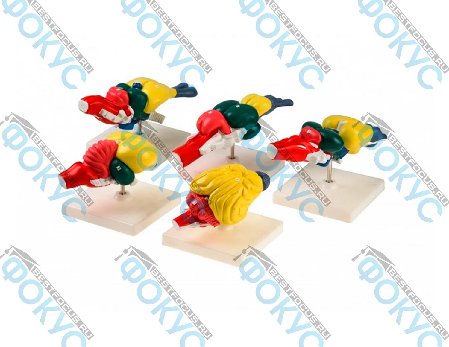 Модели изготовлены из гипса и снабжены пластмассовыми подставками. Кроме того, цветовое выделение отделов мозга делает демонстрацию более удобной. Благодаря этому преподаватель быстрее объясняет строение объекта, а учащиеся легче соотносят название отдела с его расположением. В результате урок становится более наглядным, а сложный материал воспринимается заметно проще.