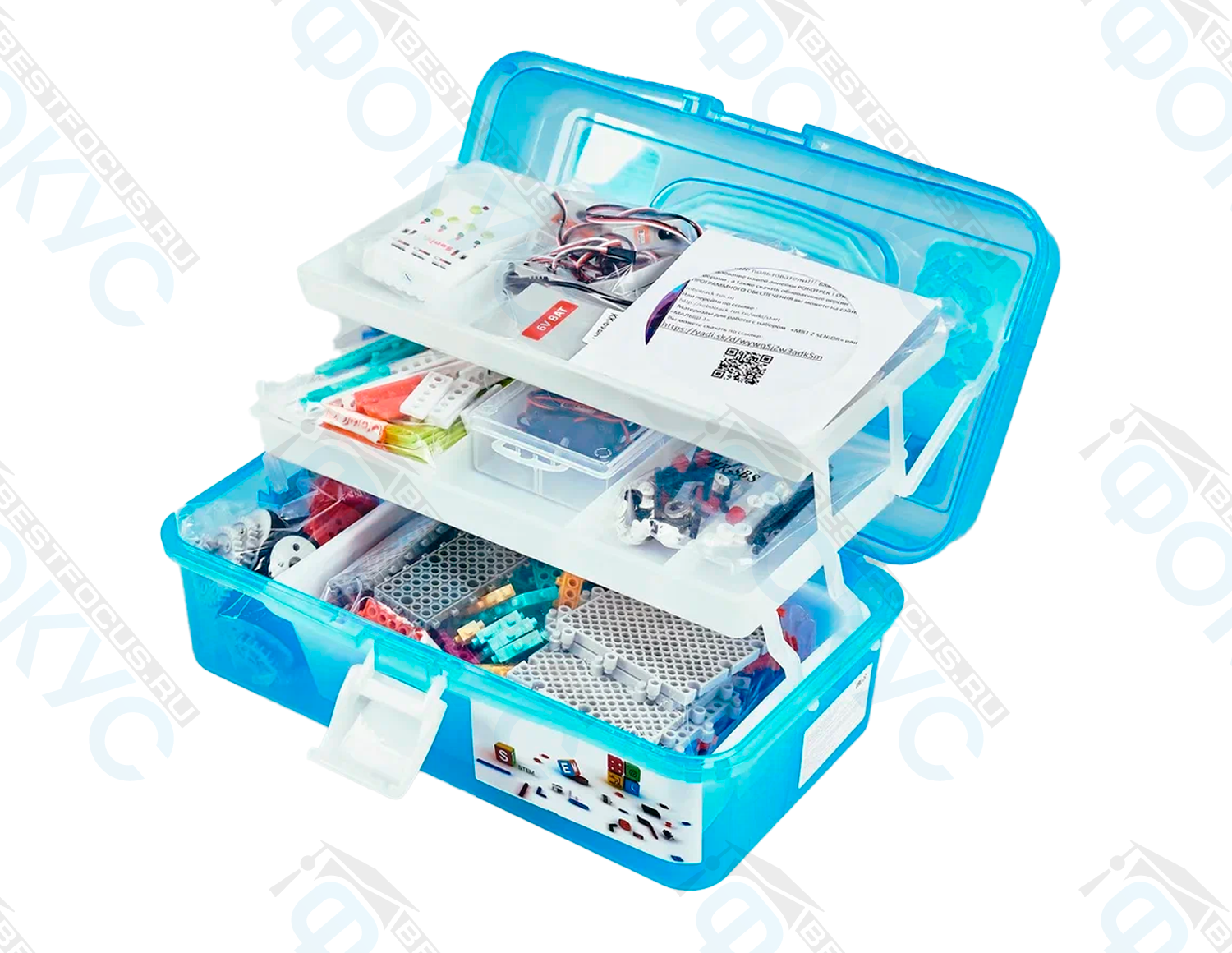 Комплект снабжён органайзером, что делает хранение удобным. Кроме того, предусмотрена инструкция для сборки и базовое ПО. Благодаря такому подходу учащиеся могут быстро приступить к работе.