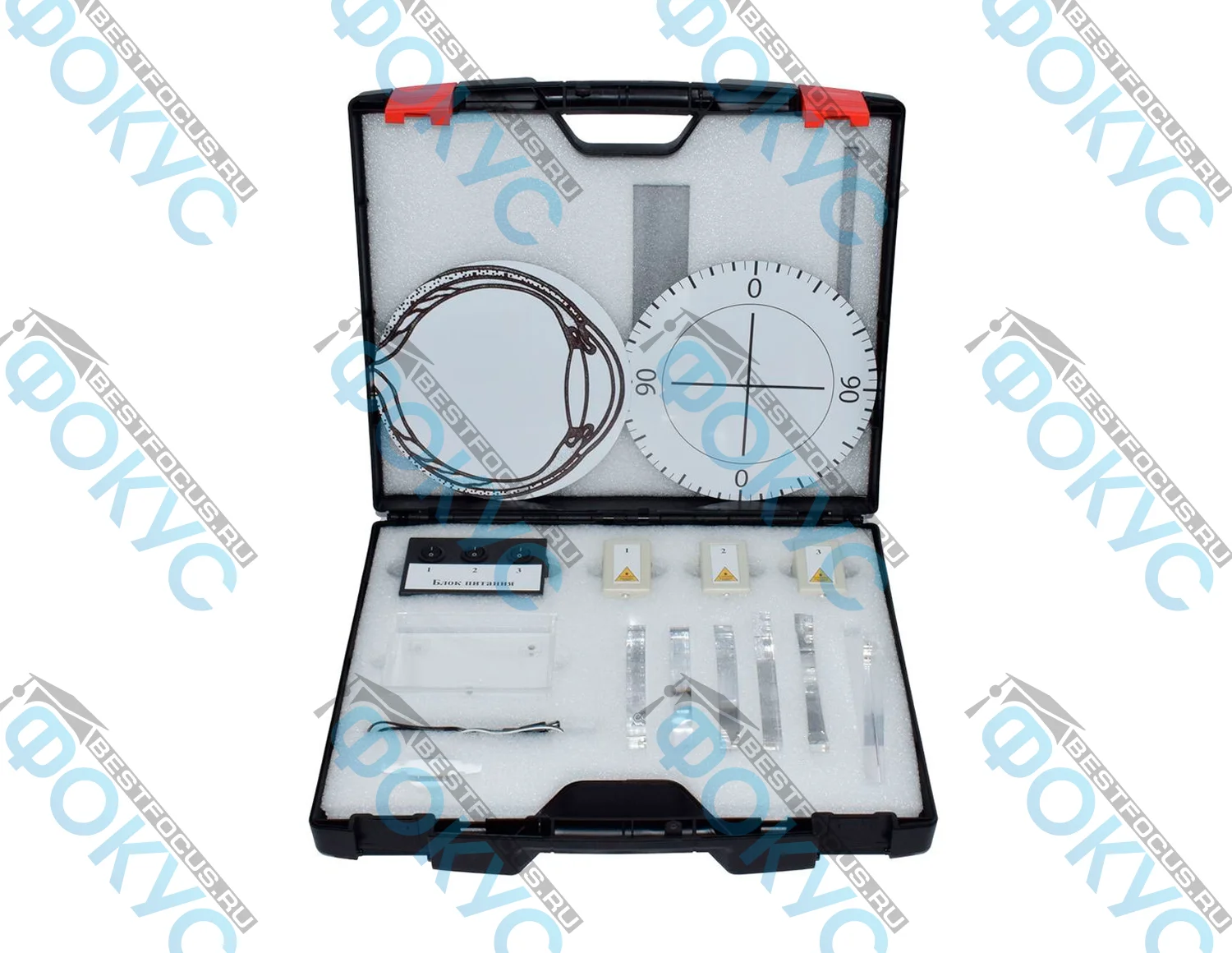 Этот комплект подходит для учебных кабинетов, где важно не просто рассказать теорию, а показать, как ведет себя свет в разных условиях. Кроме того, набор позволяет организовать сразу серию лабораторных и демонстрационных заданий. Благодаря этому преподаватель получает универсальный инструмент для объяснения отражения, преломления, фокусировки, дифракции, интерференции и поляризации света.