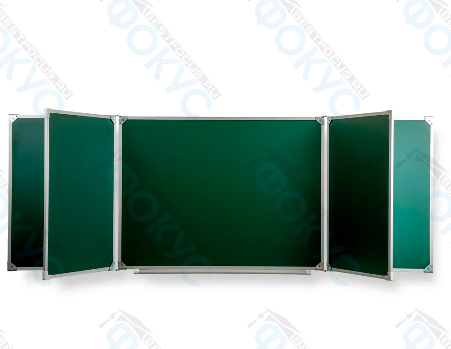 Центральное полотно крепится к стене и служит основой всей доски. Боковые створки открываются и закрываются, позволяя регулировать рабочую площадь. Дополнительные панели расширяют возможности для записей и демонстрации материала. Таким образом, доска остаётся универсальной и подходит для разных форматов занятий.