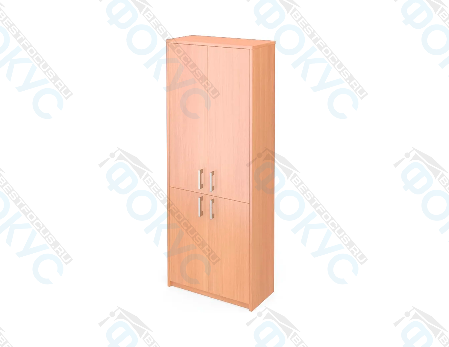 Конструкция шкафа двухсекционная: верхняя и нижняя часть отделены перегородкой. Такое разделение помогает удобно распределять книги, папки и учебные материалы. Кроме того, каждая секция закрывается дверцами, что защищает содержимое от пыли и сохраняет порядок.