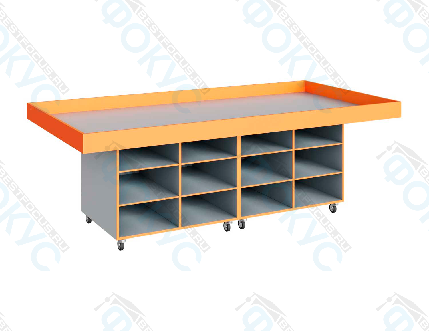 Максимальная вместительность также является преимуществом. Под столом помещается до 12 ящиков и до 24 типовых коробок с конструкторами. В результате педагогу удобно распределять комплекты между командами.