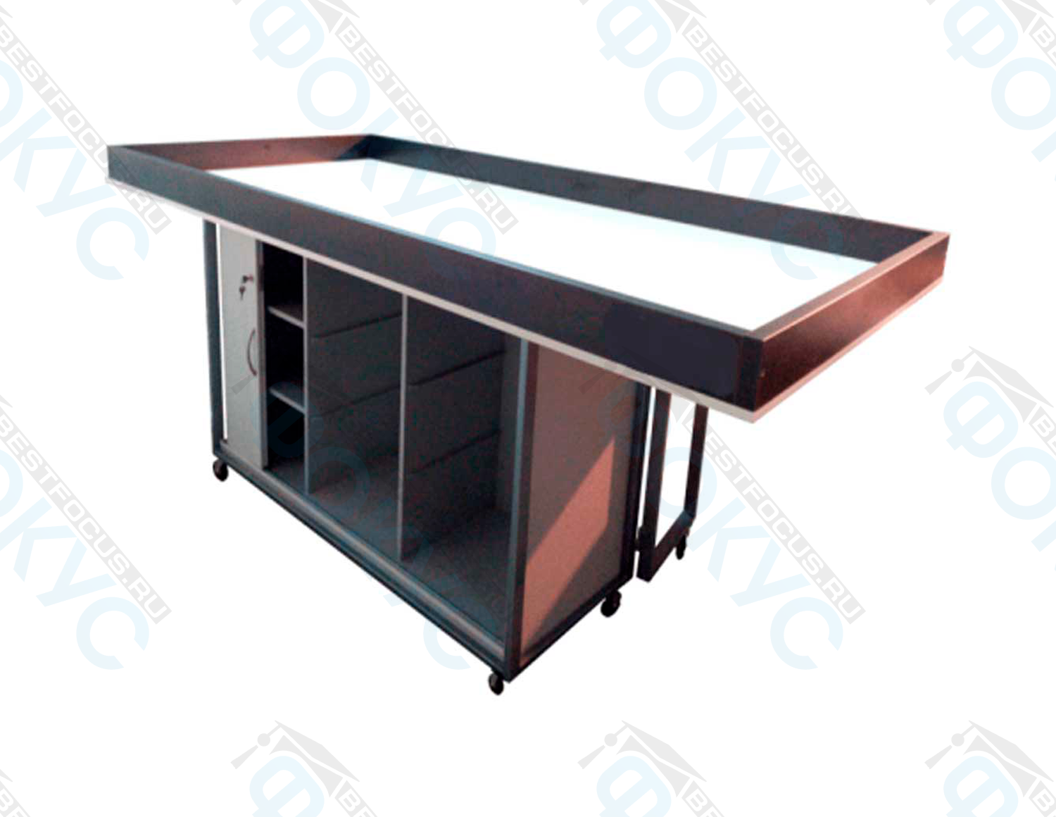 Организация хранения становится проще благодаря тумбам с замками. Учитель контролирует доступ к оборудованию и защищает его от пыли. Кроме того, возможность вертикального подъёма столешницы помогает экономить пространство и ускоряет транспортировку.